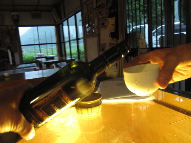 グラスは湯飲み お新香 ぱりぱり蕎麦がつまみ。