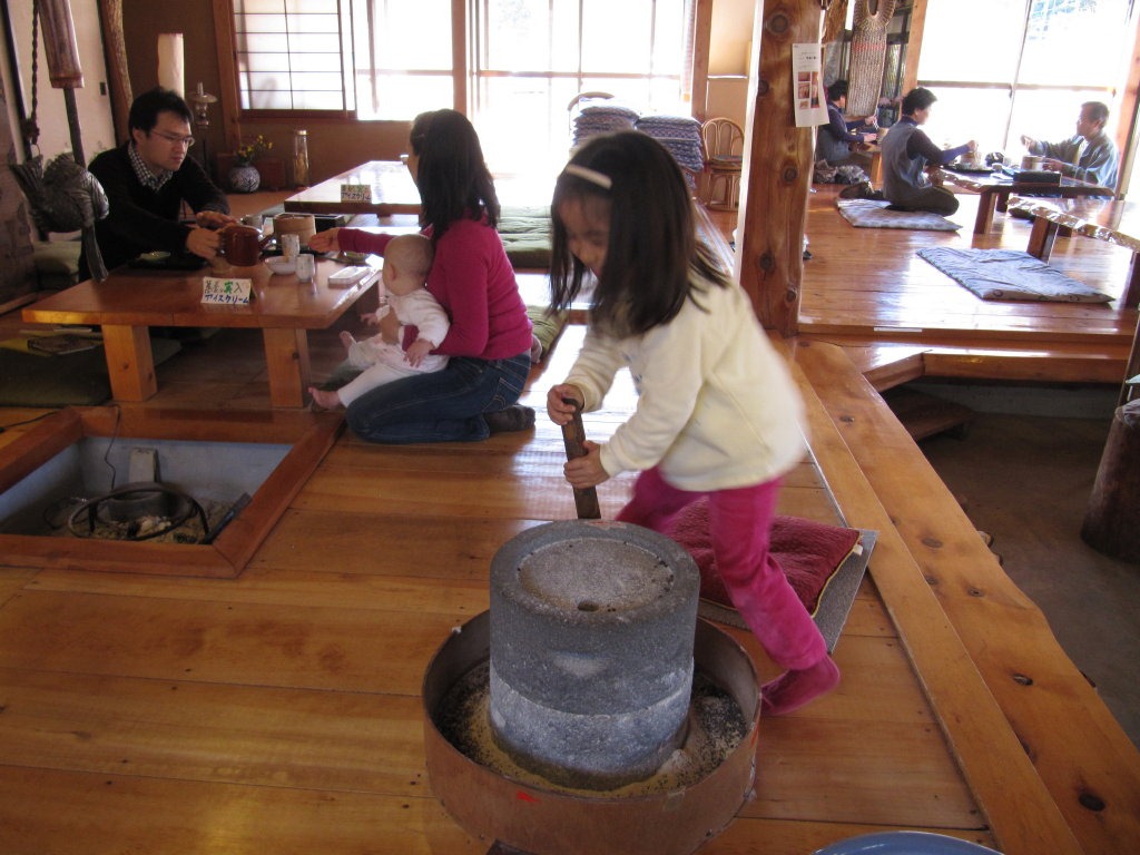 石臼初体験 将来きっと蕎麦挽きしたとき体が覚えていることでしょう!!
