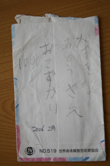 娘が小学1年生の時 母親からお年玉をもらった袋の裏面に 『大すきなおとうさんへおこずかい1000』 って書いてある。半分を私にくださいました。