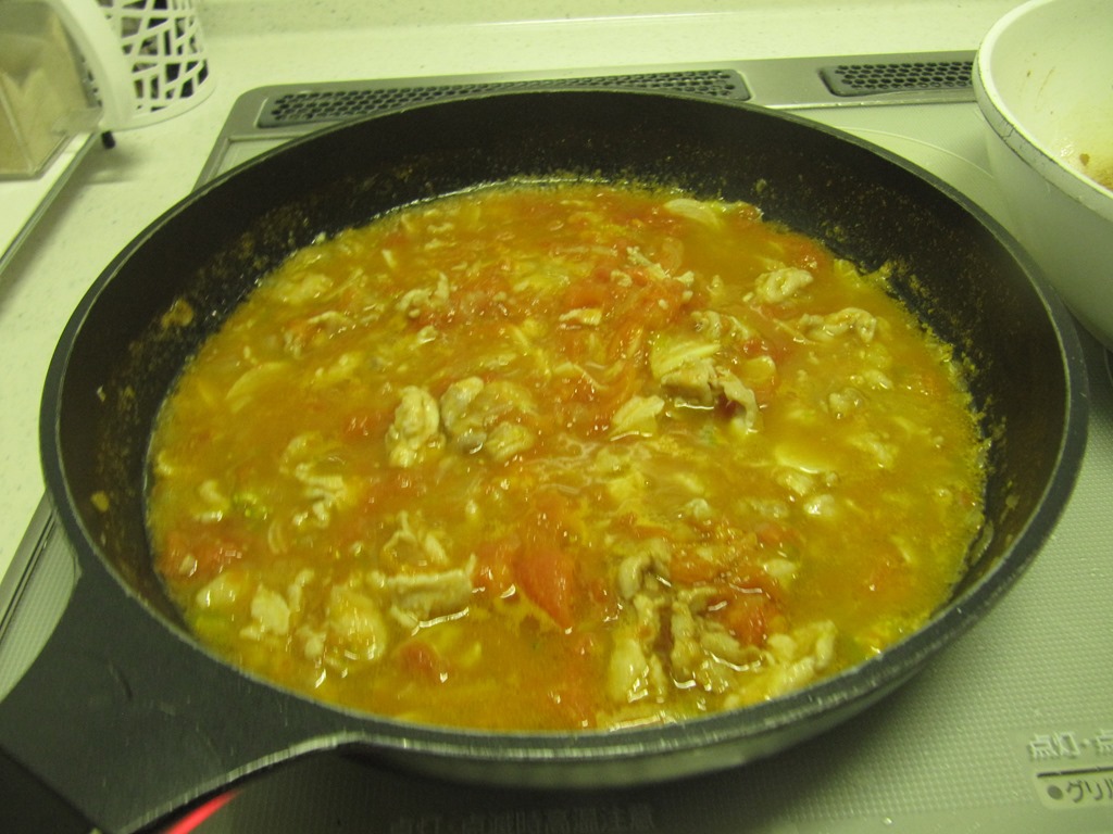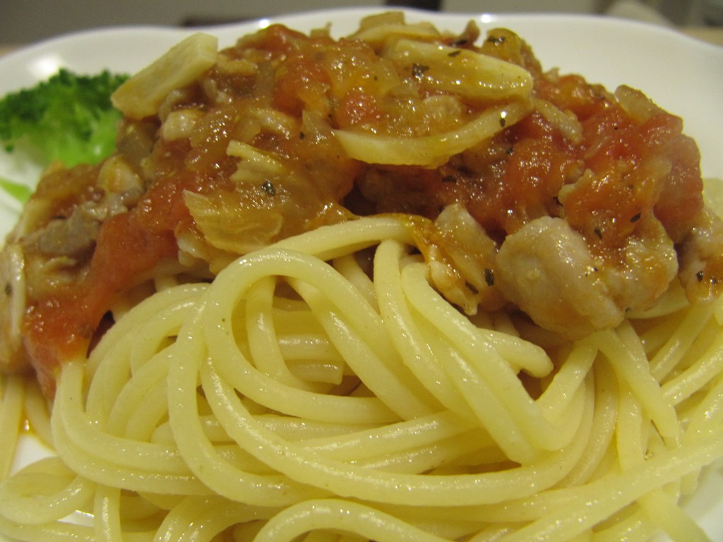スパゲッティーは 2時間ほど 水にしたしておきました